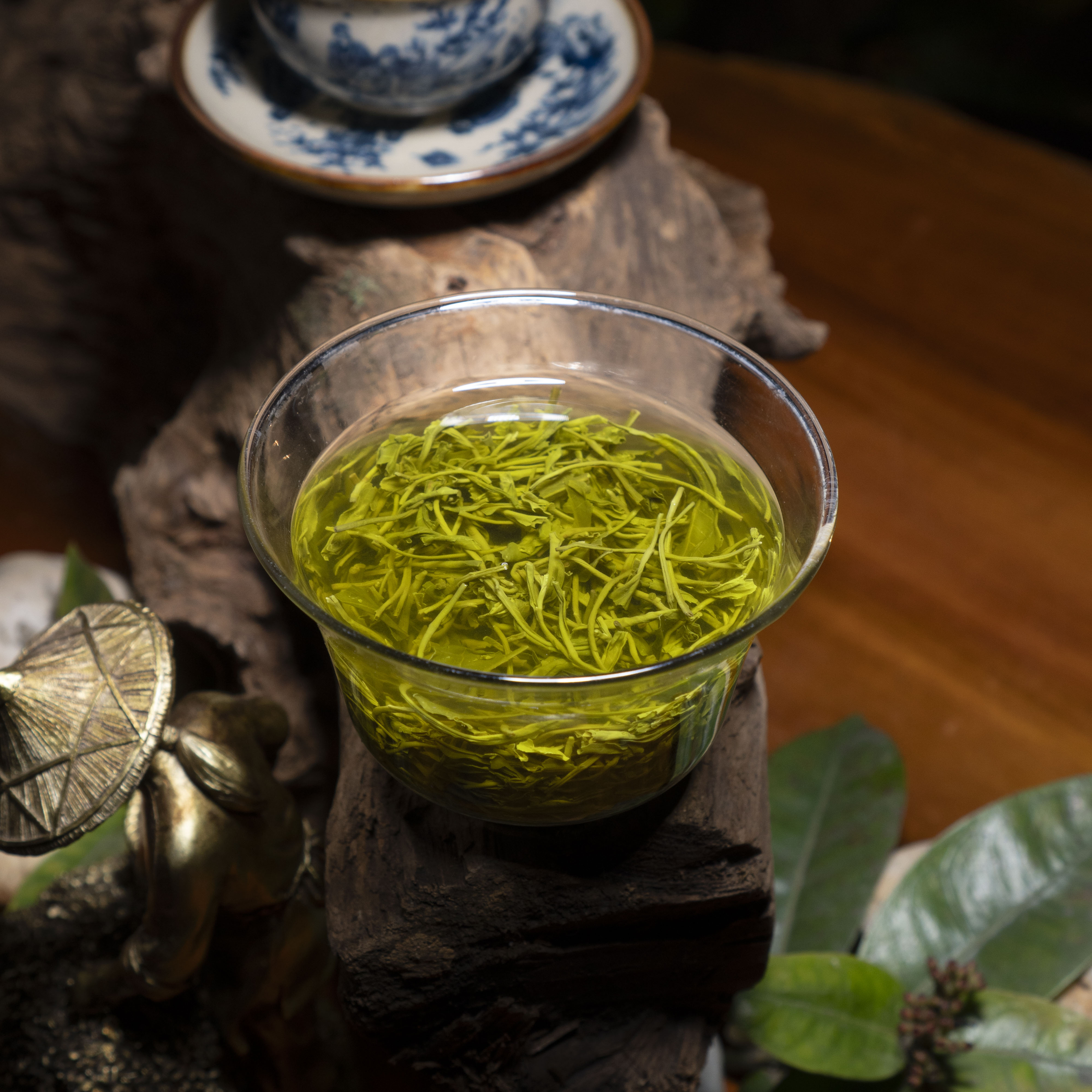 - Đặc điểm trà: Trà được chế biến từ những đinh trà non nhất của giống Long Vân, với tỷ lệ đinh trà cao, hái từ các cây trà lâu năm. Trà mang hương cốm non đặc trưng, vị chát dịu nhẹ, hậu ngọt thanh tao kéo dài, nước trà màu xanh vàng nhạt trong trẻo, bền nước qua nhiều lần pha, thể hiện chất lượng hảo hạng của sản phẩm.